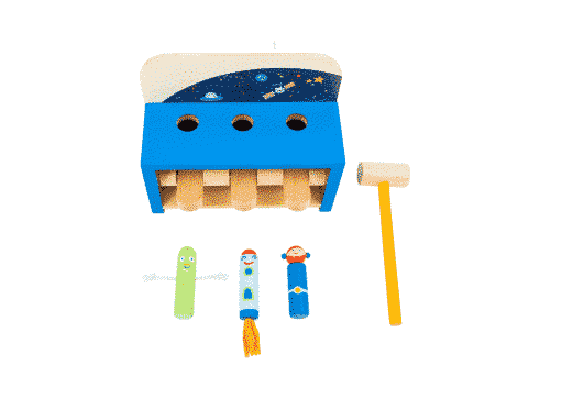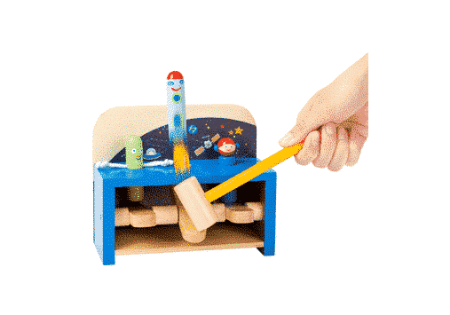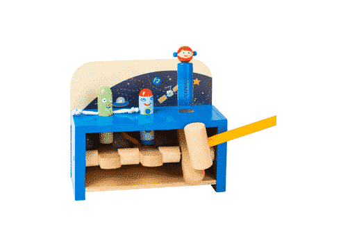 Il est particulièrement amusant de laisser la fusée, l’astronaute et l’extraterrestre décoller en frappant avec le marteau.