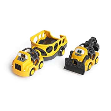 Ce kit remorque comprend deux véhicules et une remorque. Toutes les pièces sont confectionnées dans des matières résistantes et ne présentent aucun angle saillant, ce qui les rend sûres pour les jeunes enfants.